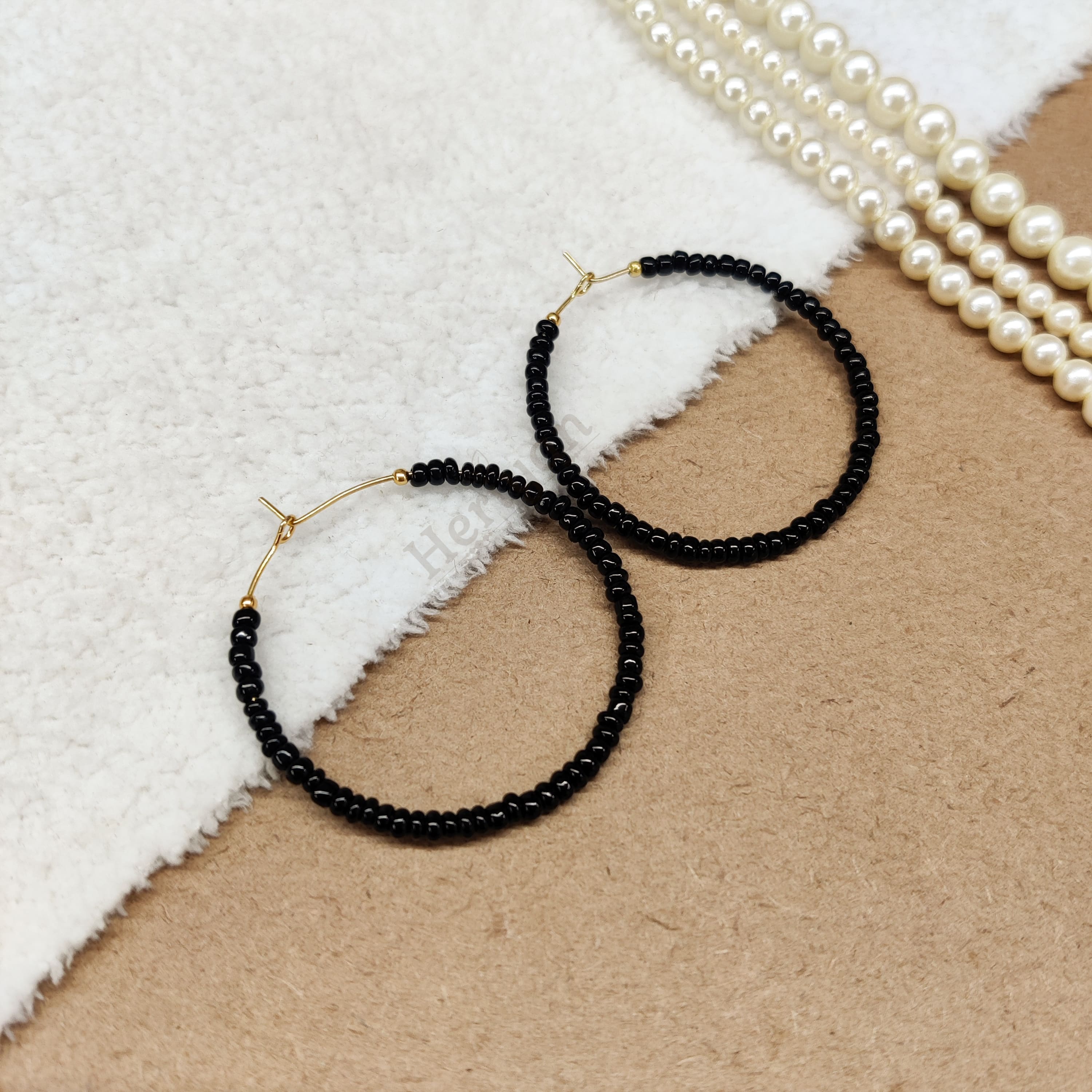 Black Beaded Hoop Earrings (Full) Earrings