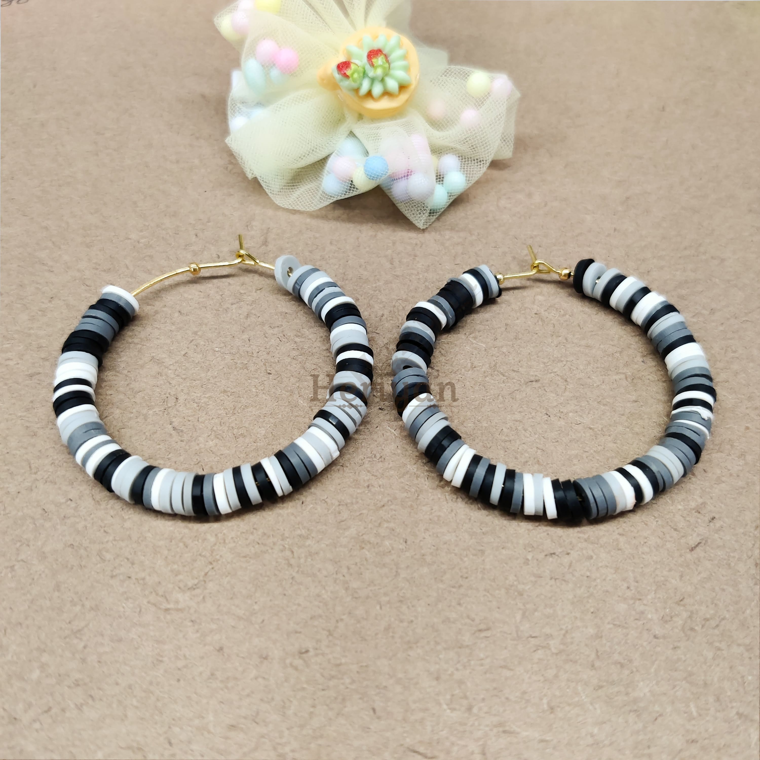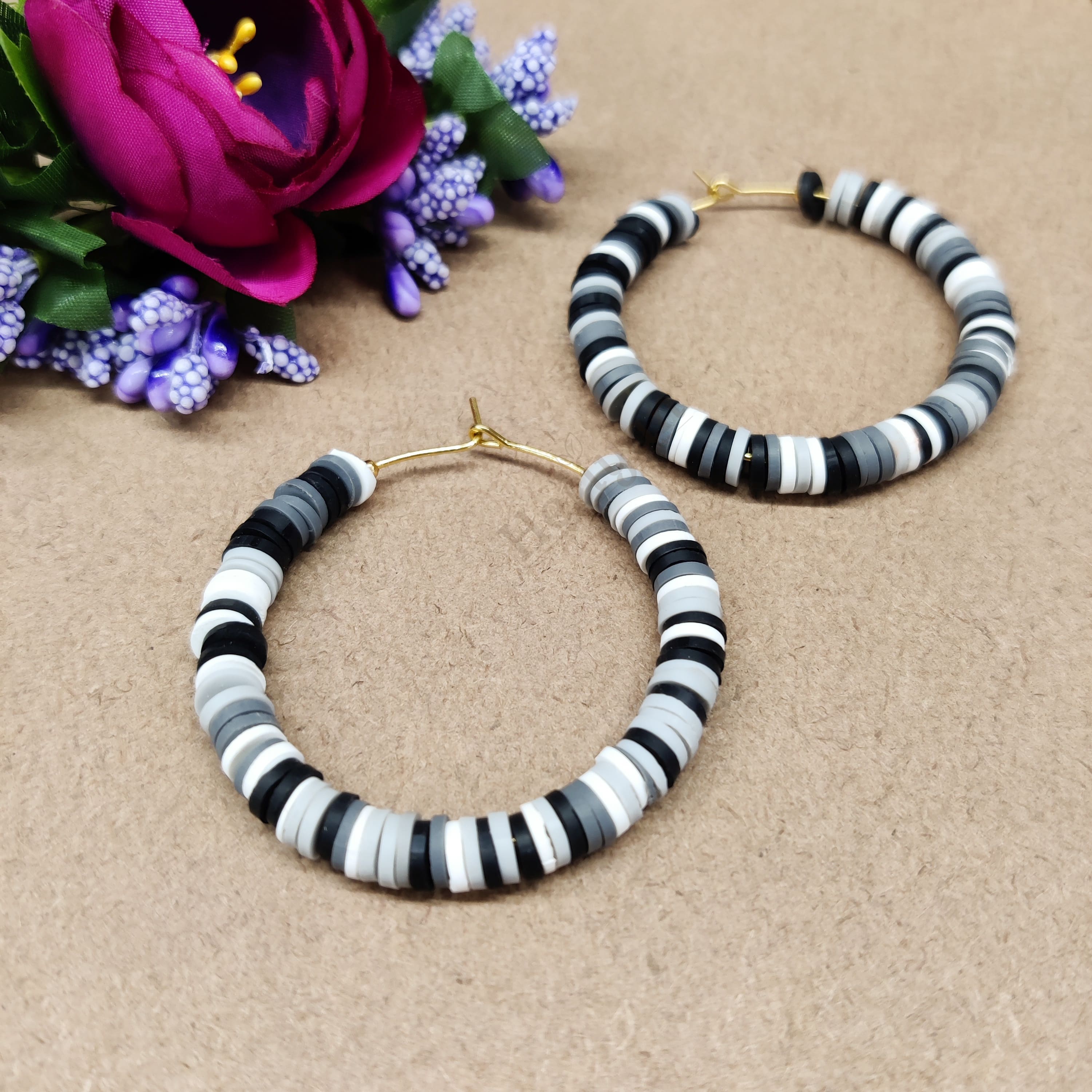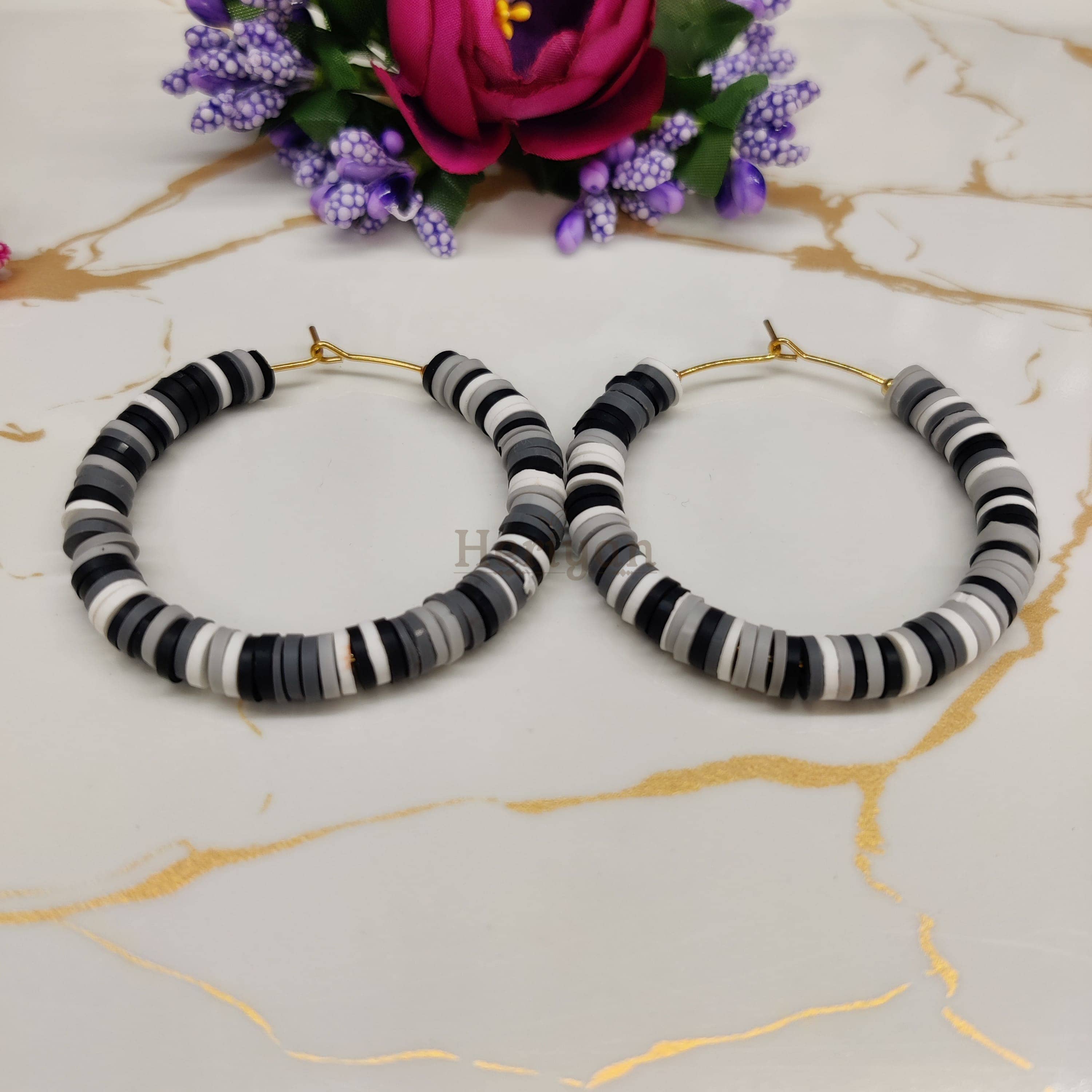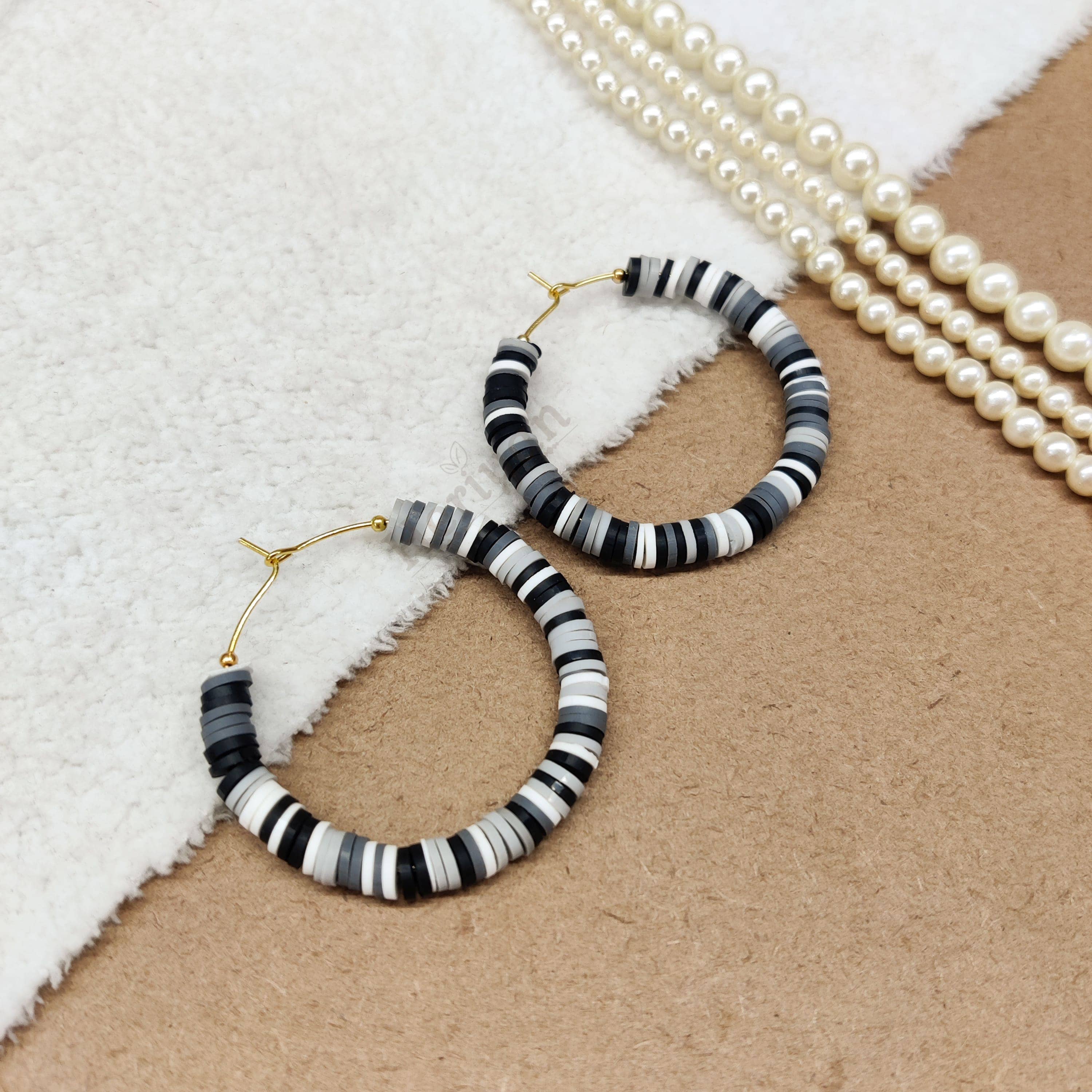 Black&White Heishi/Polymer Clay Fimo Beads Hoop Earrings (Full) Earrings