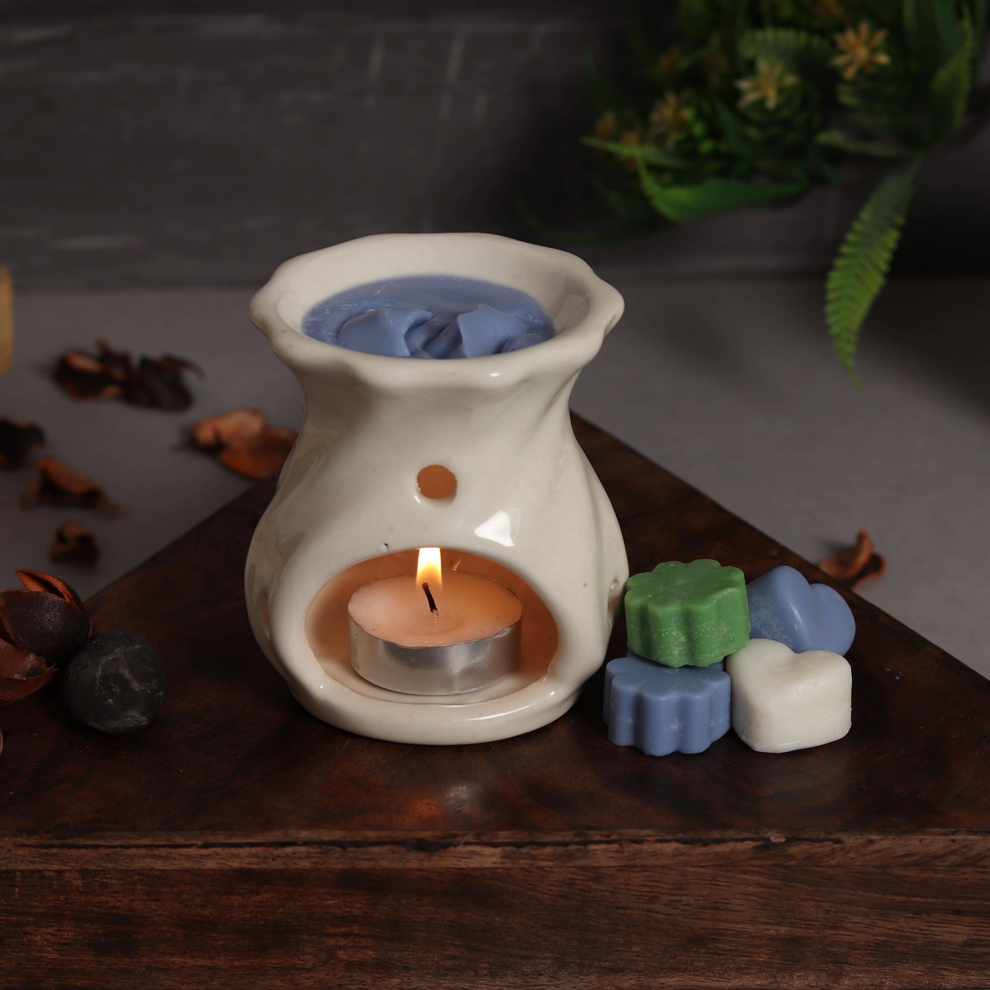 ✍🏾 Just place a tealight candle in the bottom and add the wax melt or oil to the top. Fragrance your home in style with this attractive wax melt burner.