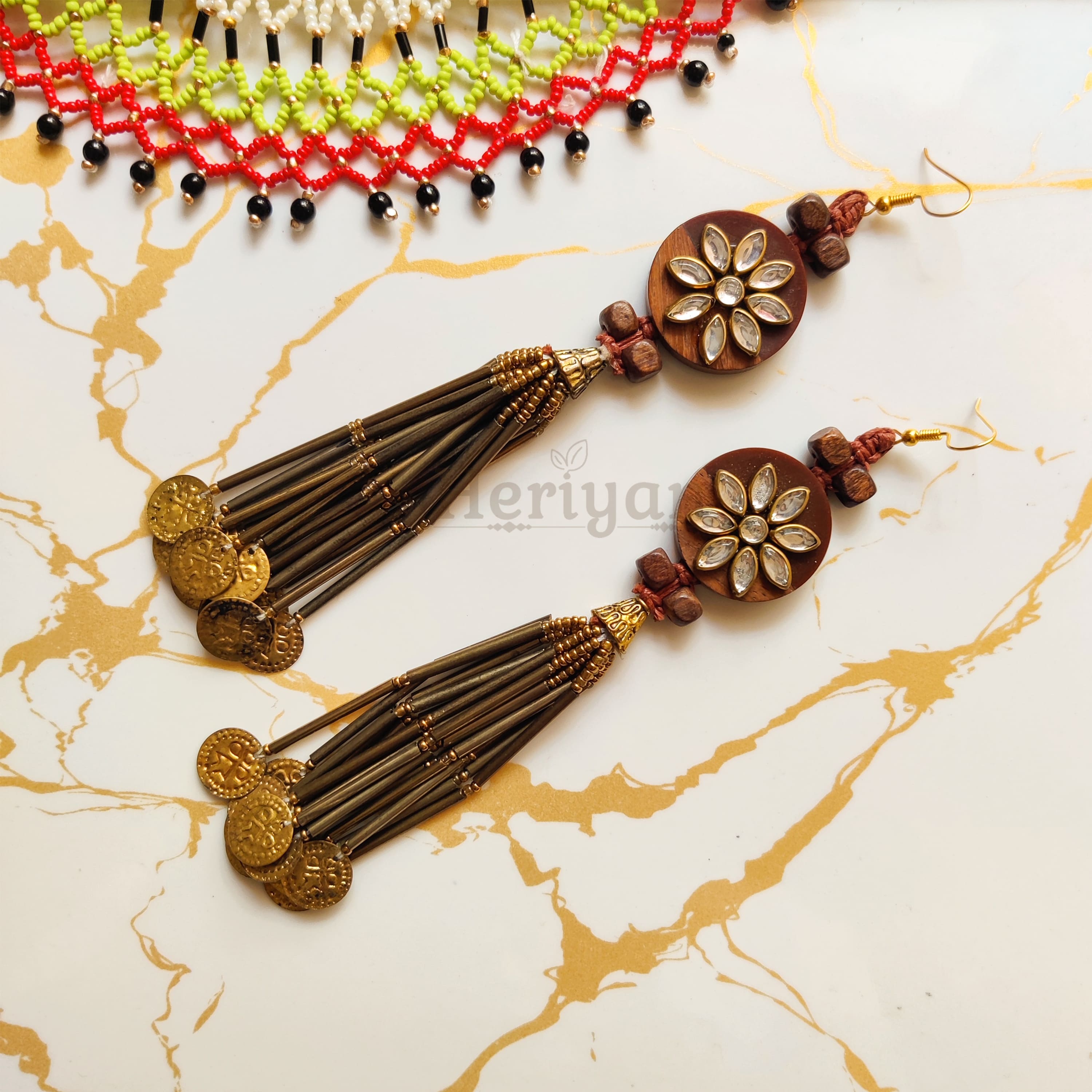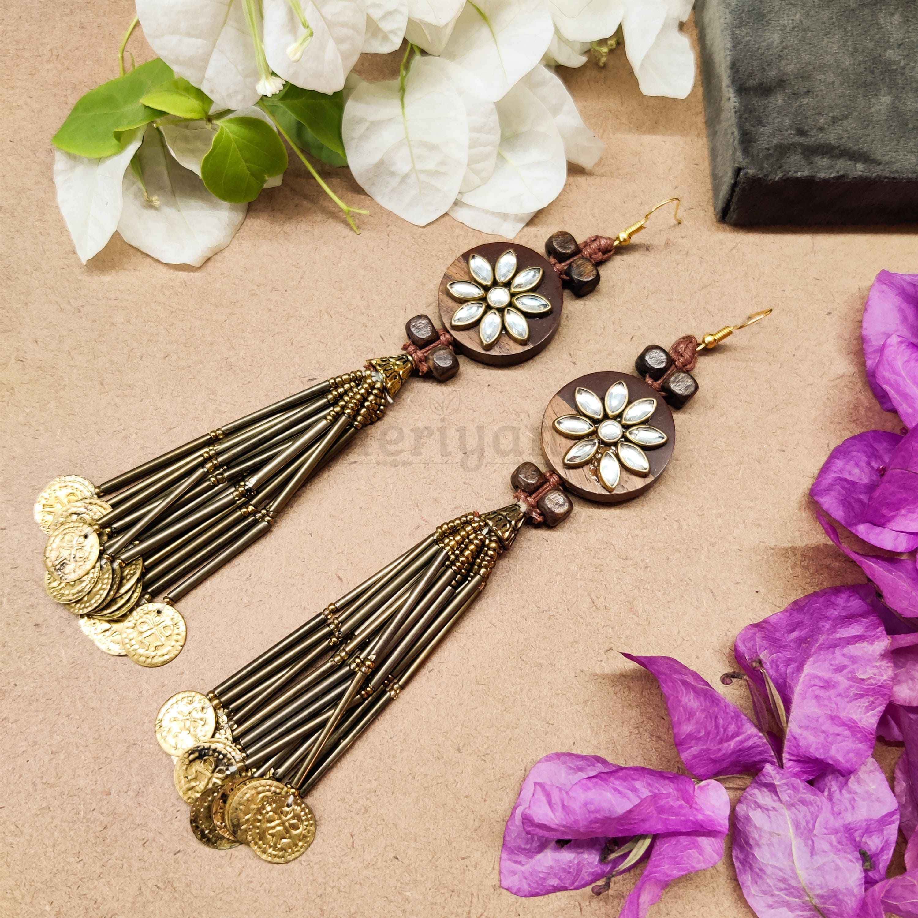 Chocolaty Long Boho Beaded Tassel Fringe Earrings Earrings