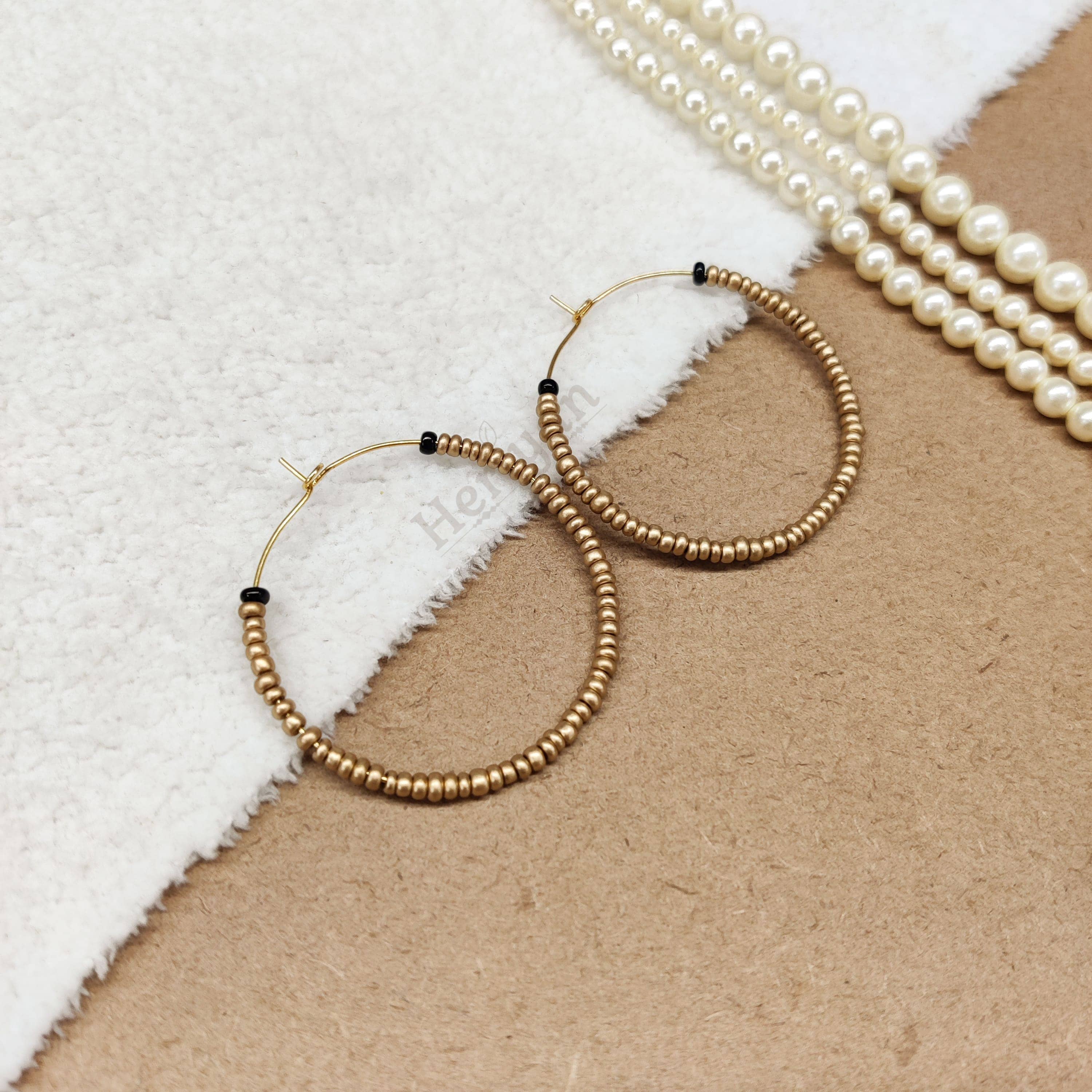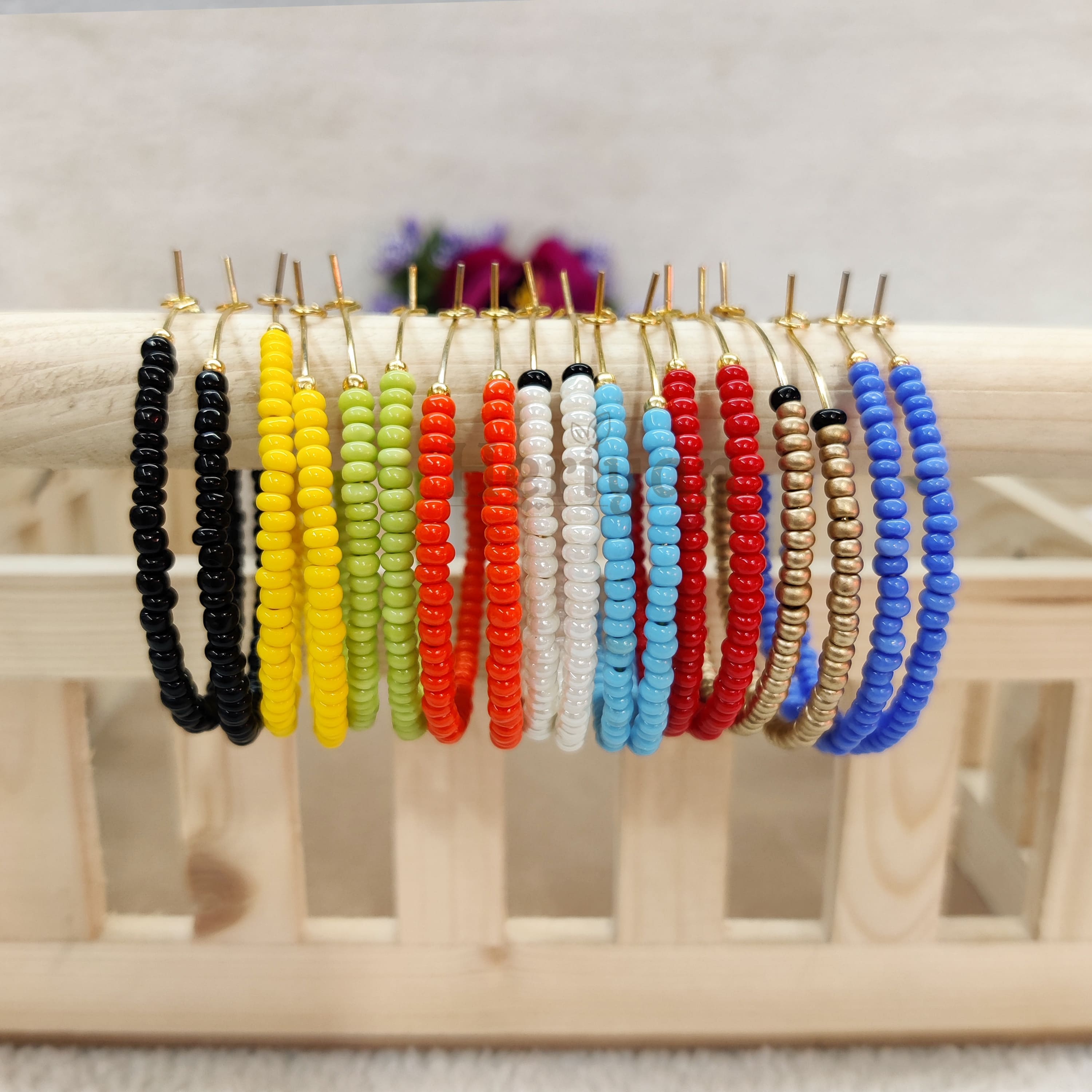 ✍🏾 With these hoops, the glass seed beads are just the right size (3mm) to give you a pop of noticeable color, yet still lightweight!