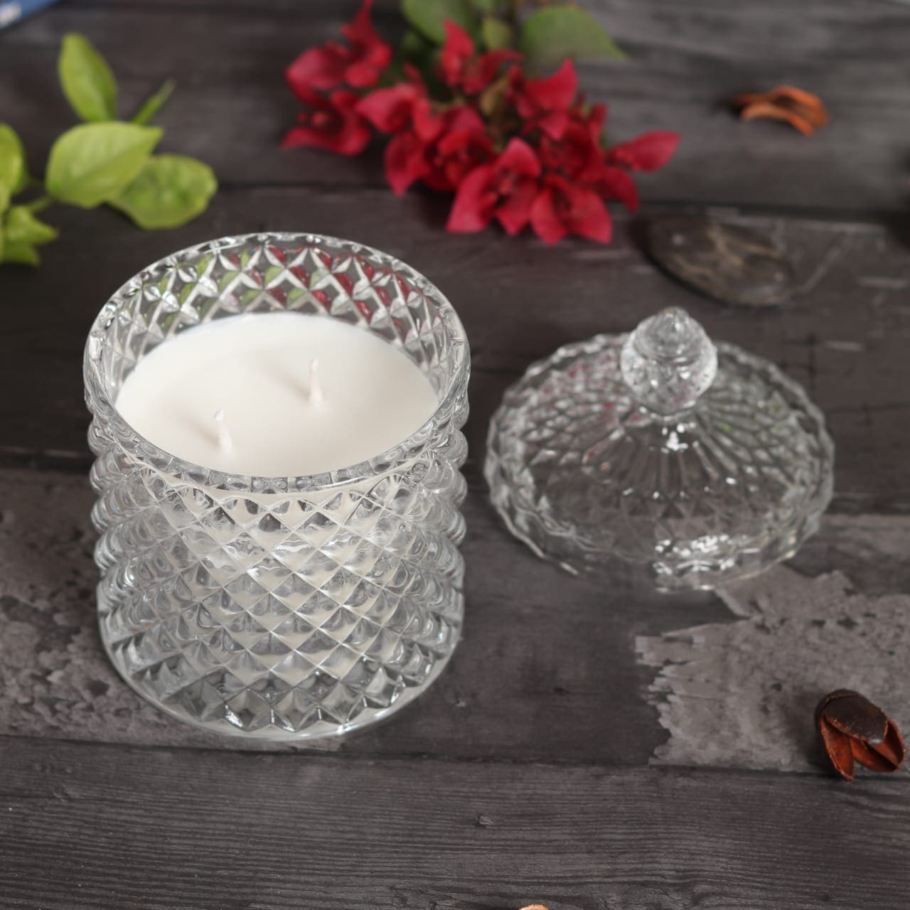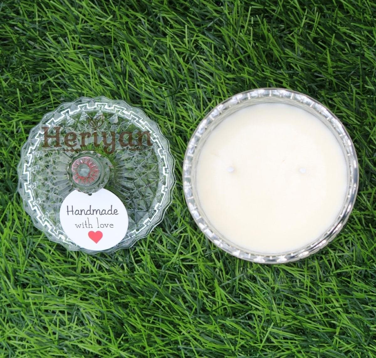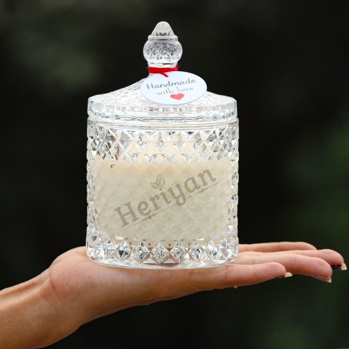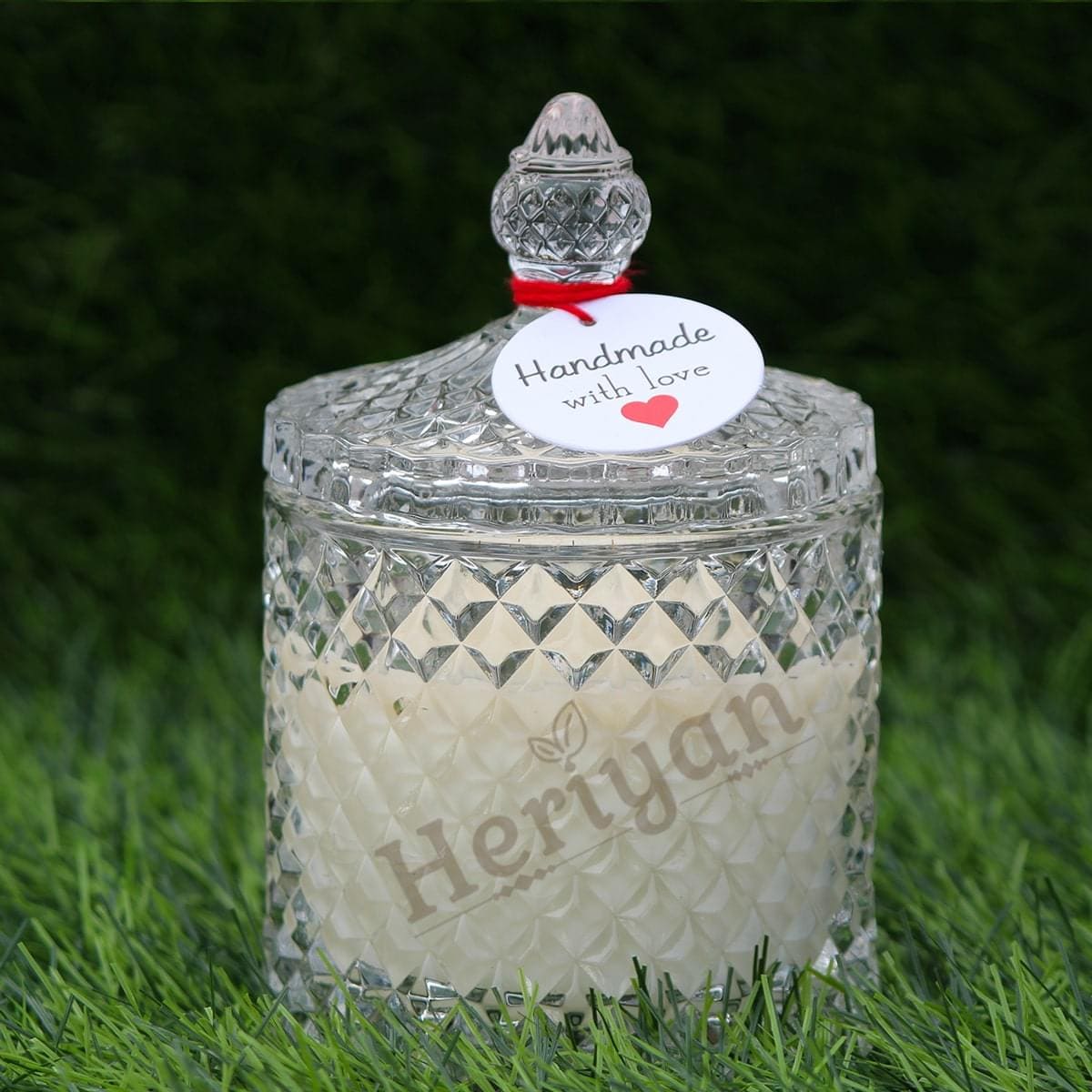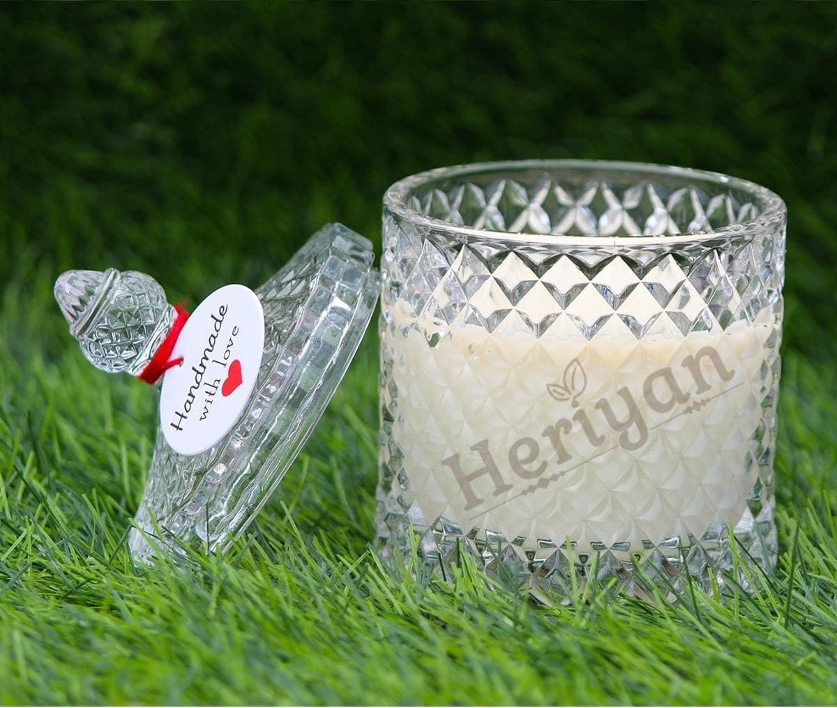 Crystal Glass Jar Candle From Premium Glass Candle Collection.INGREDIENTS: Our Candles are made using an 100% Natural Soy Wax, Lead-Free Cotton Wick and fragrance Oils to give you a constant smell from the beginning to the end of the candle.