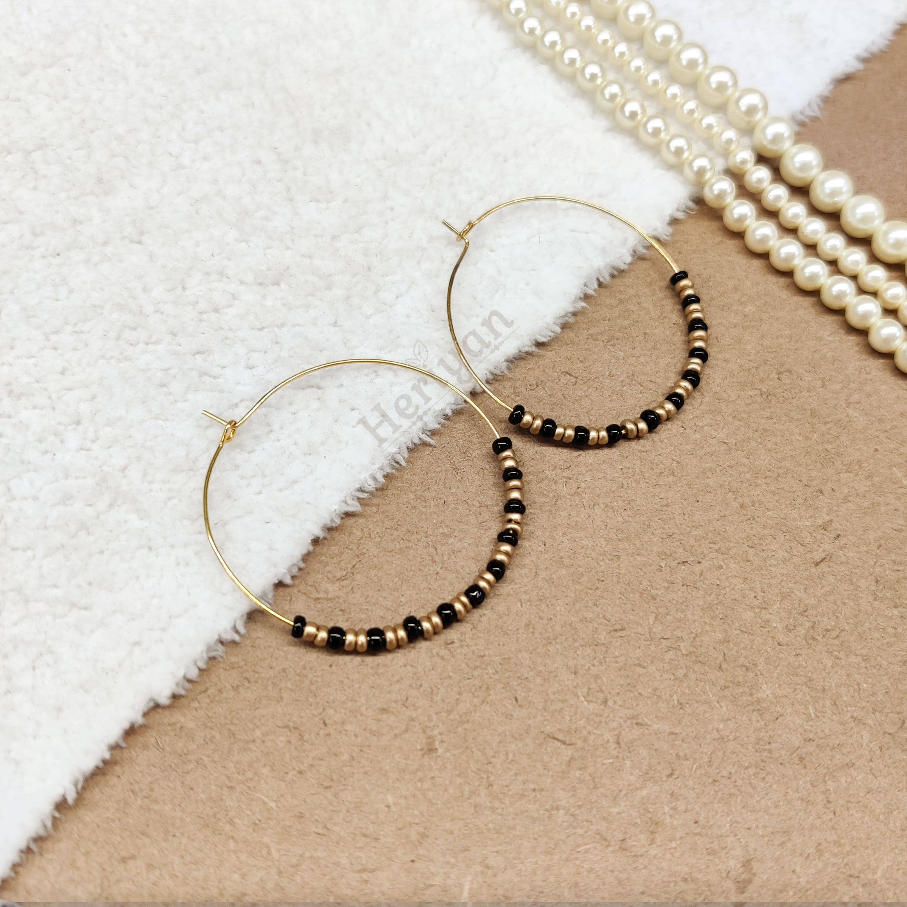 Black Beaded Hoop Earrings (Full)