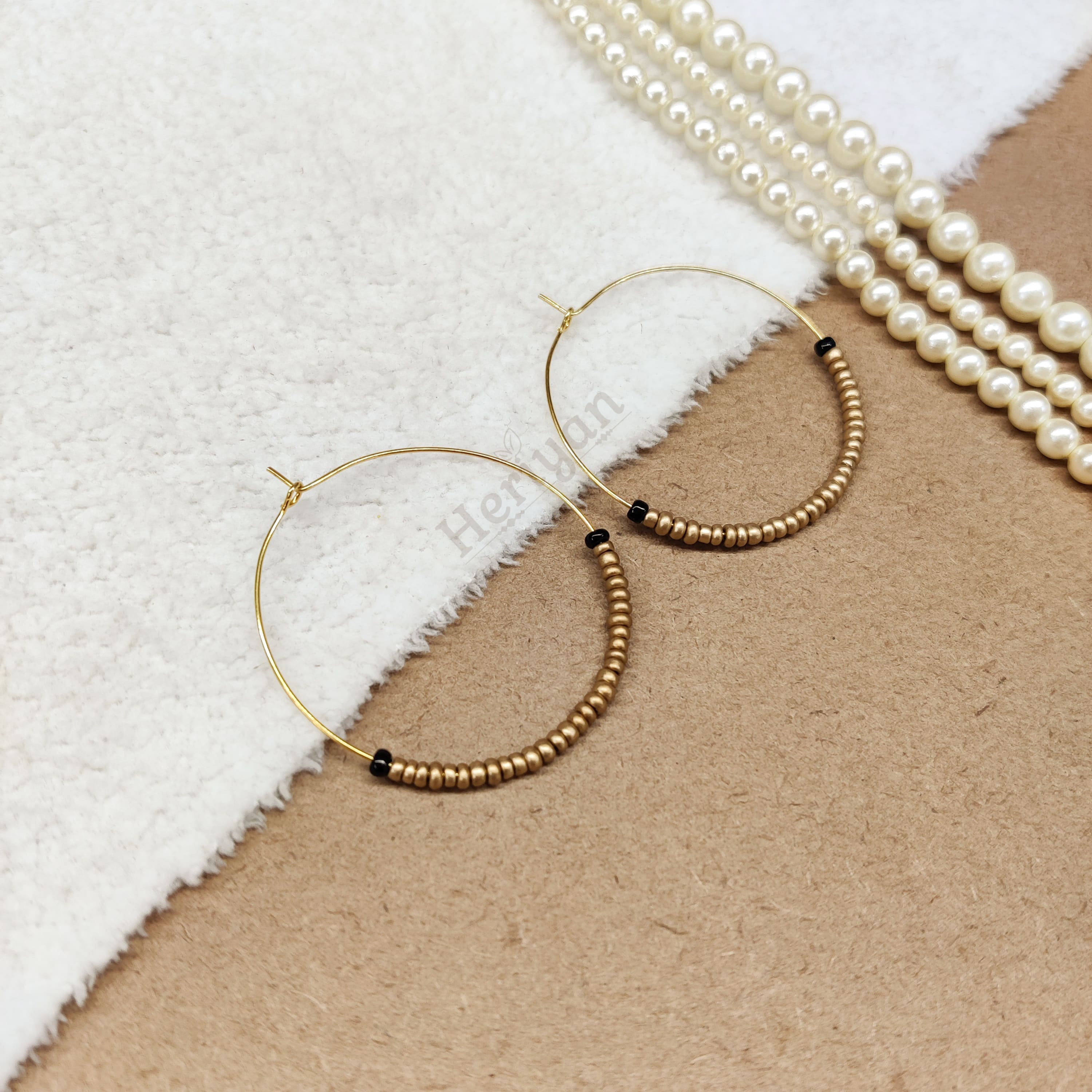 Dusty Gold Beaded Hoop Earrings (Half) Earrings