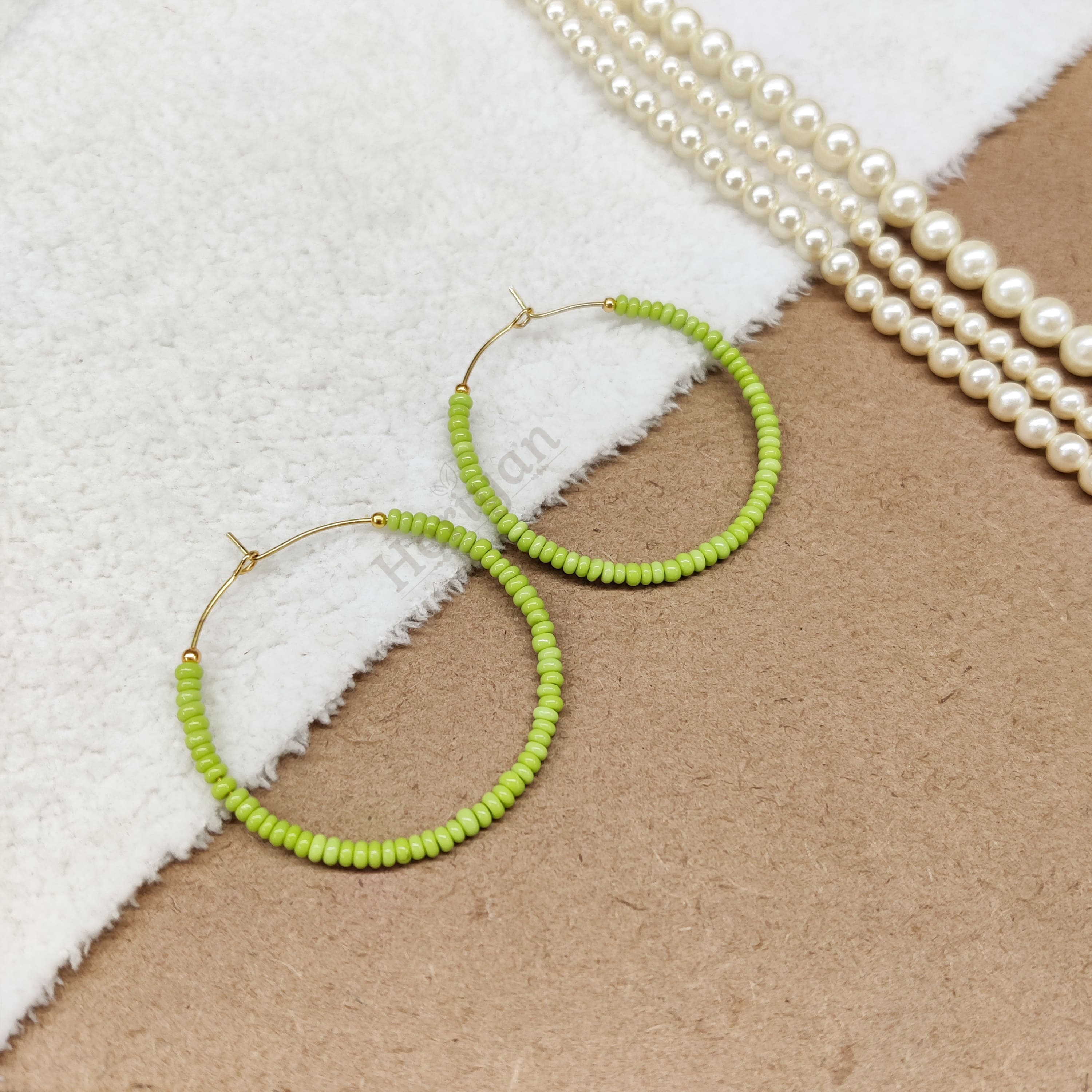 ✍🏾 With these hoops, the glass seed beads are just the right size (3mm) to give you a pop of noticeable color, yet still lightweight!