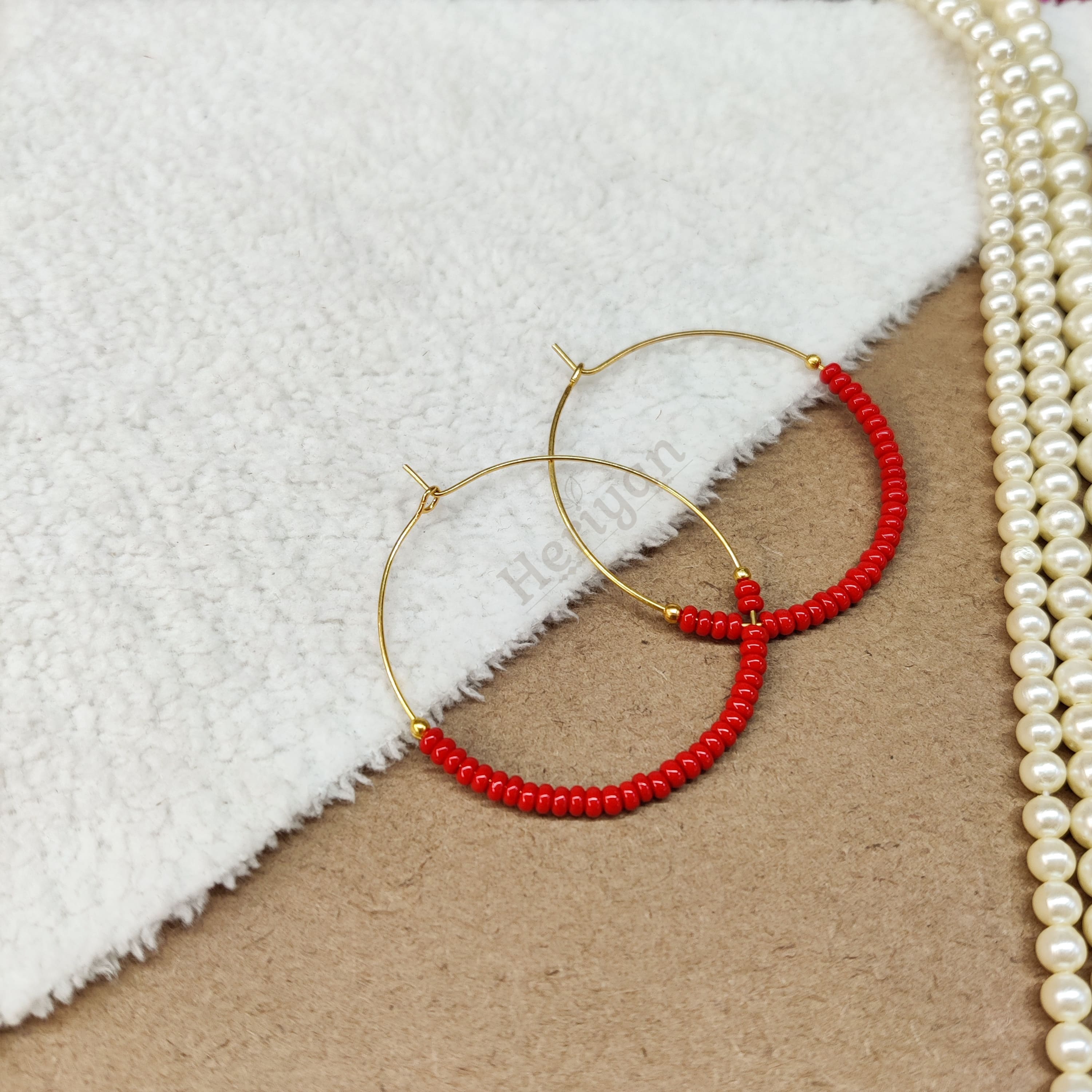 ✍🏾 With these hoops, the glass seed beads are just the right size (3mm) to give you a pop of noticeable color, yet still lightweight!