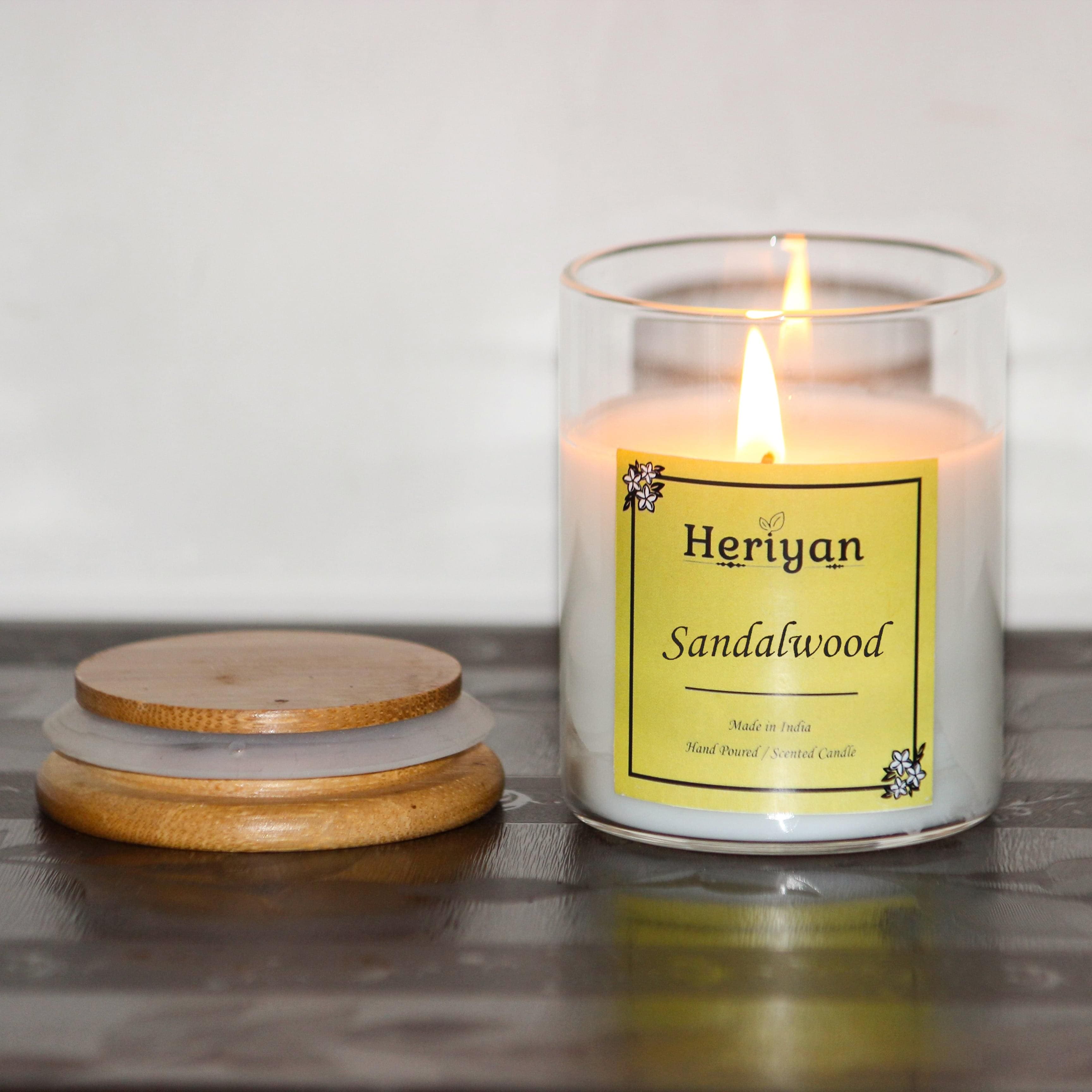 Sandalwood Scented Wooden Lid Glass Jar Candle
