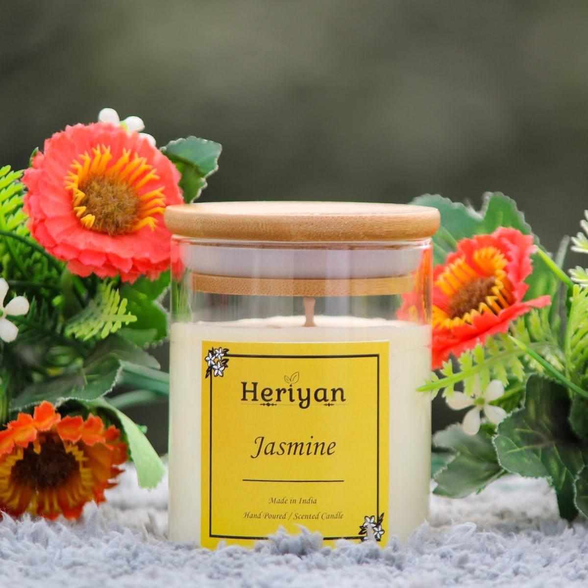 Wooden Lid Glass Jar Candle From Premium Glass Candle Collection.