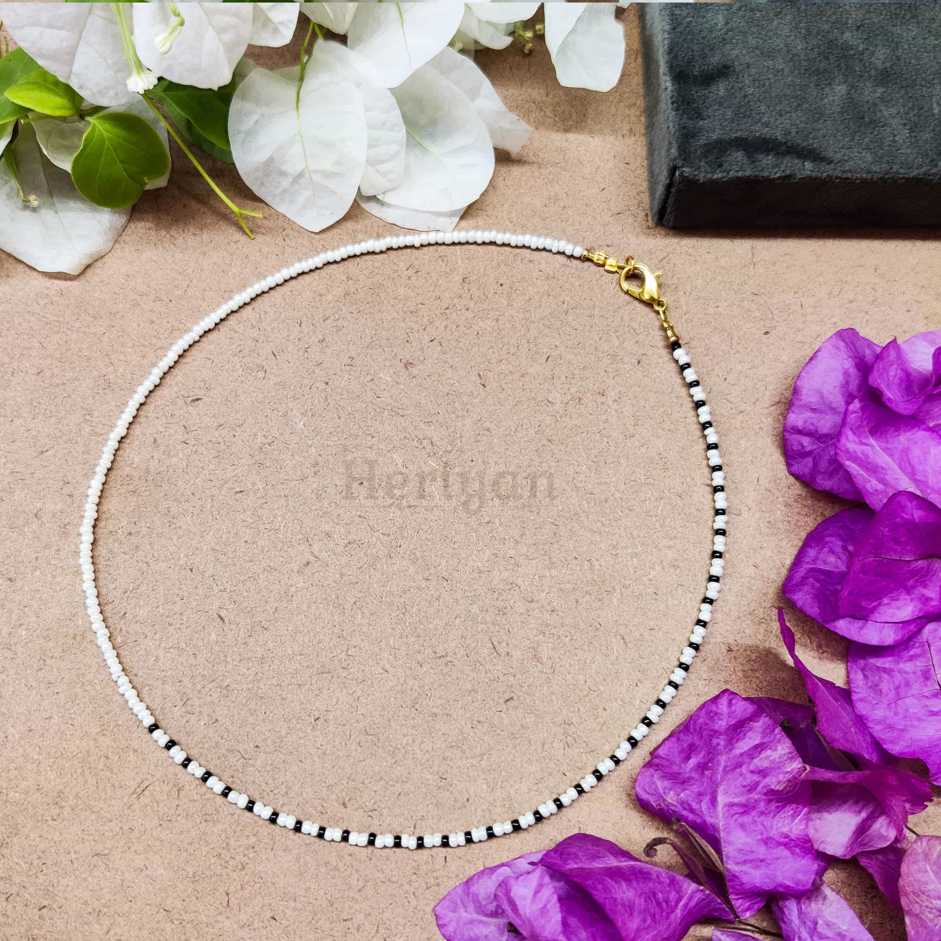 Single Layer Beaded Necklace (White) Beaded Necklaces