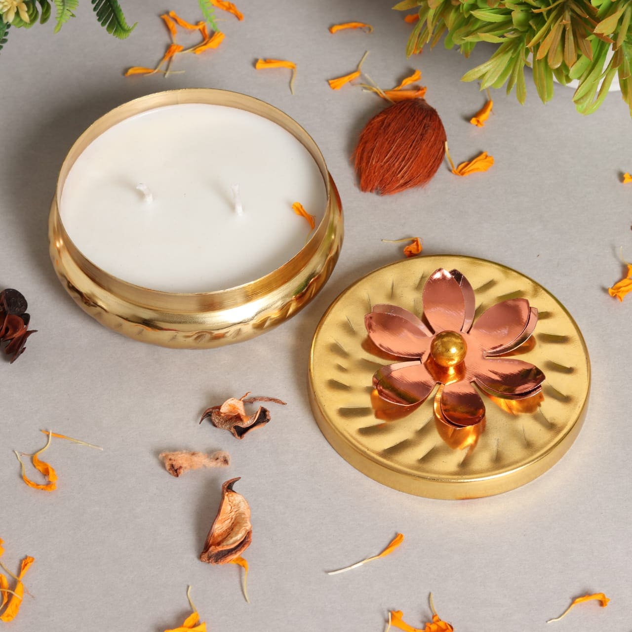 Small Gold Hammered Handi Metal Jar Scented Candle