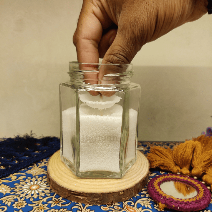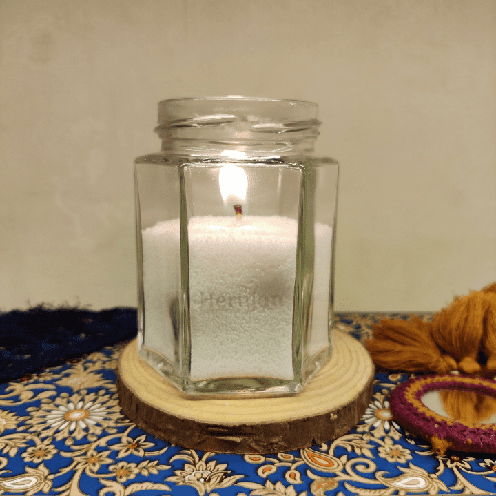 1) Pour the Pearl wax into the glass Jar and flatten the top.