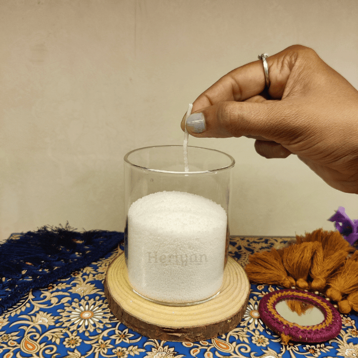 1) Pour the Pearl wax into the glass Jar and flatten the top.