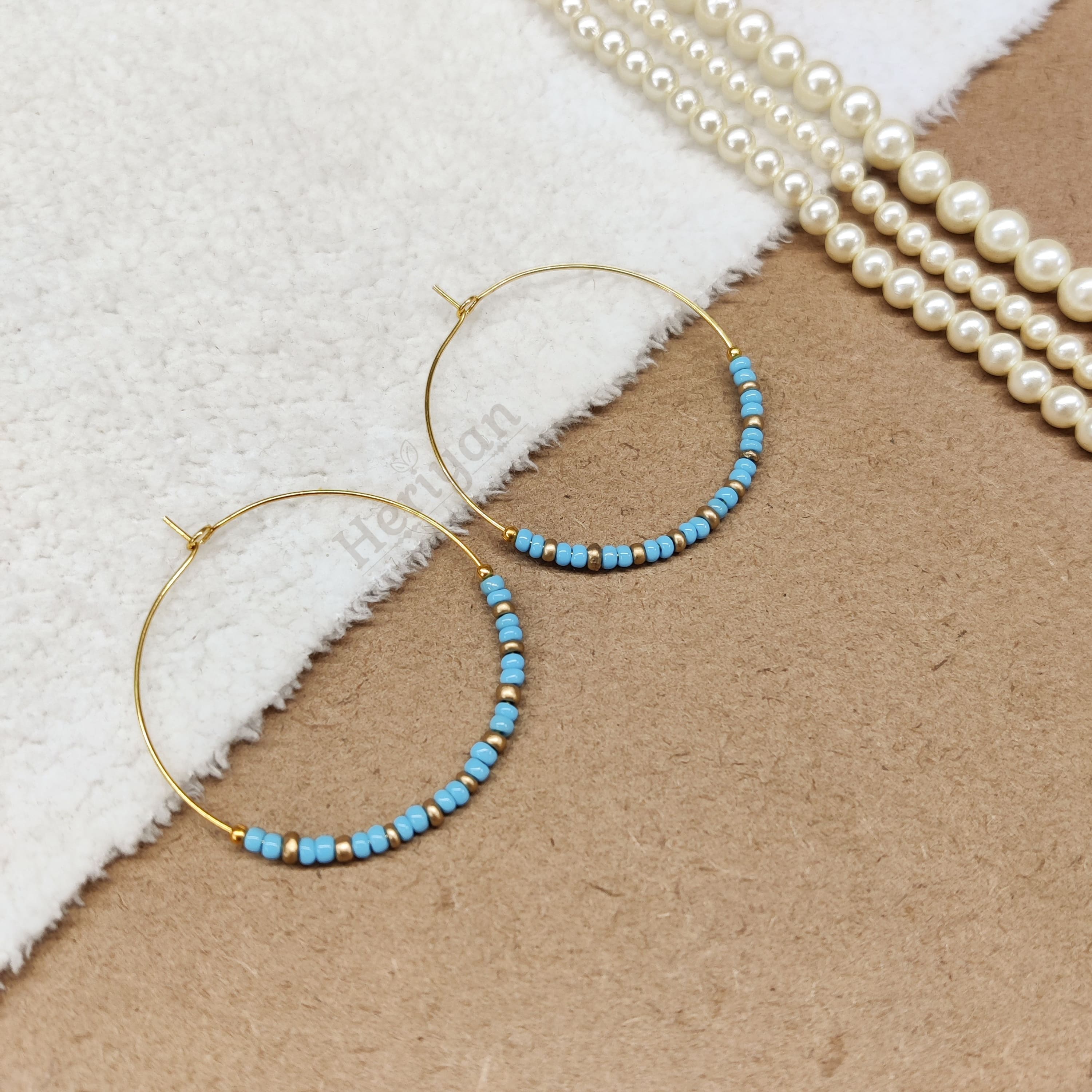TURQUOISE Beaded Hoop Earrings (2 Colored) Earrings