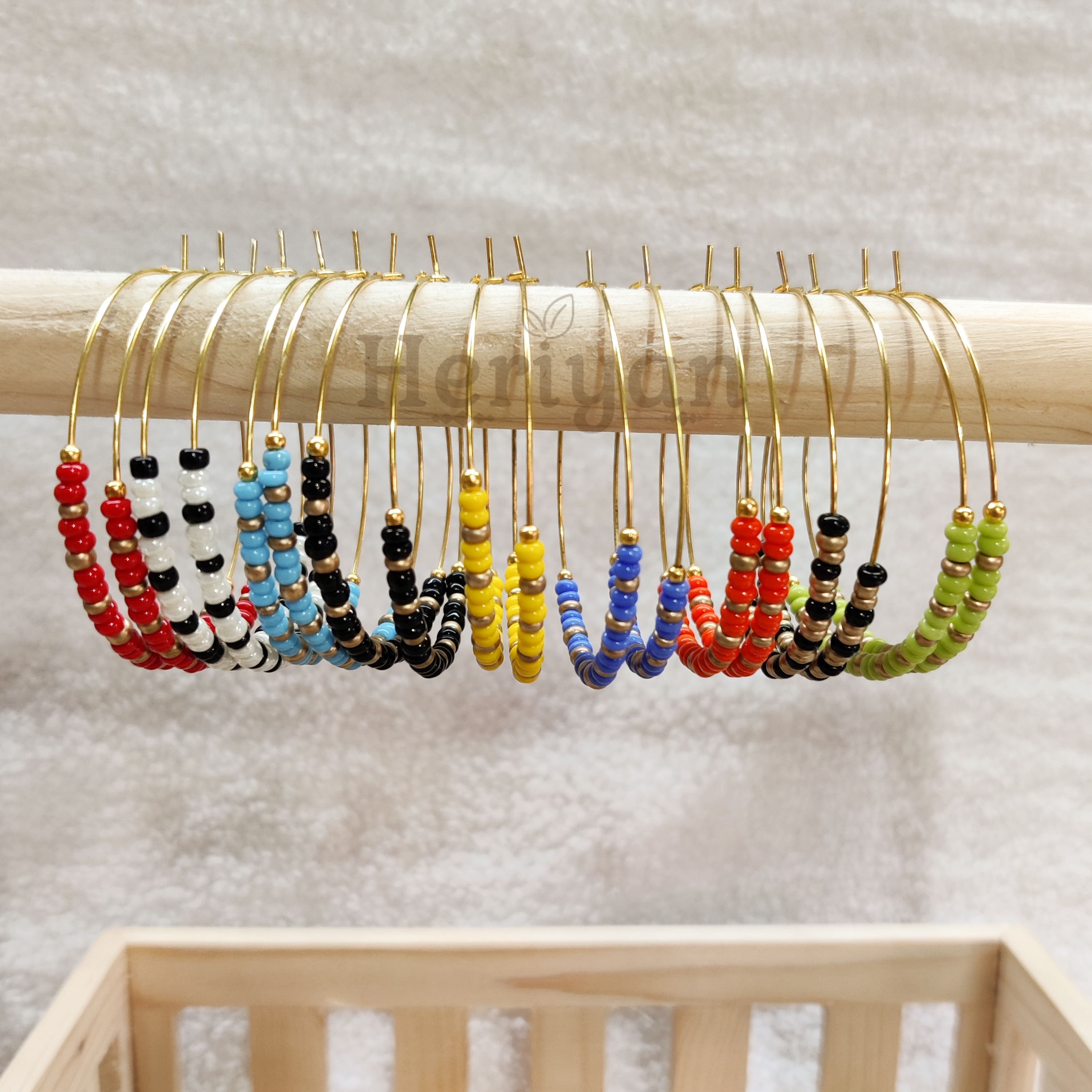 ✍🏾 With these hoops, the glass seed beads are just the right size (3mm) to give you a pop of noticeable color, yet still lightweight!