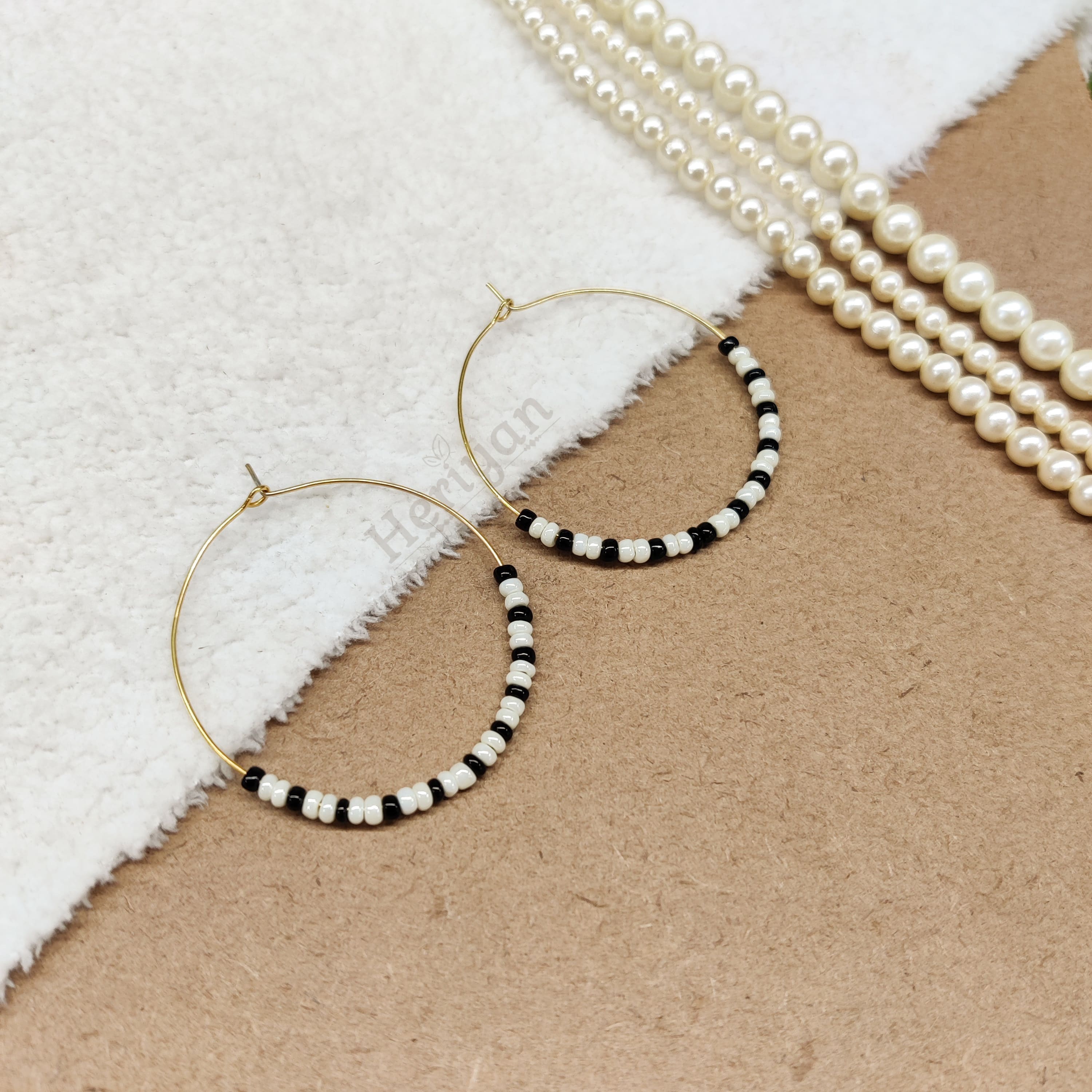 White Beaded Hoop Earrings (2 Colored) Earrings