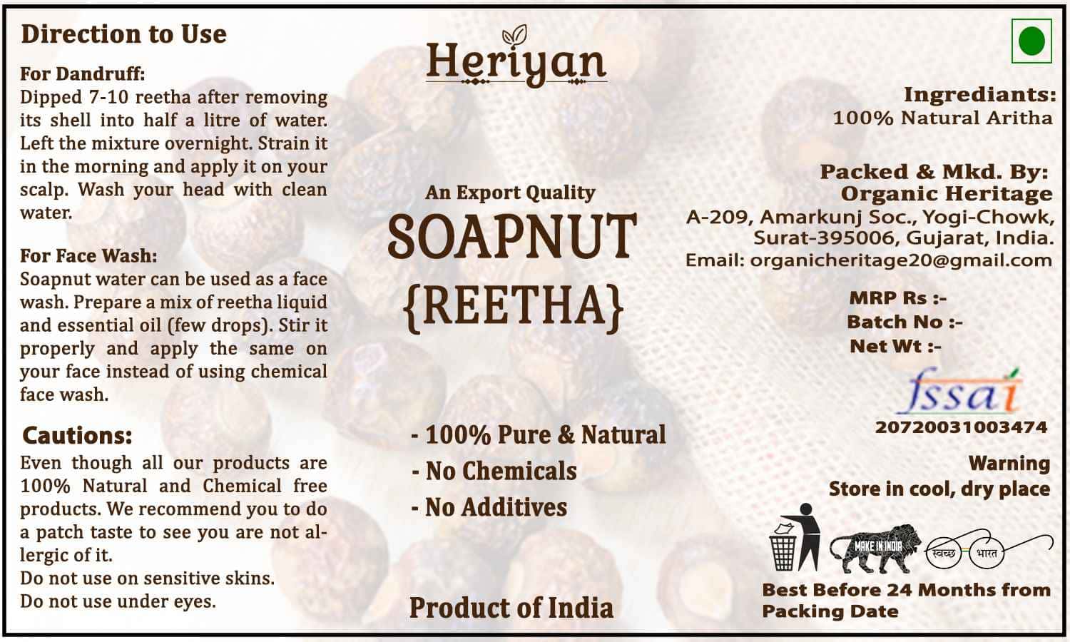 ✍🏾 Ingredients : 100% Pure and Natural Whole Reetha | Soapnut, Clean and Sorted | Export Quality.