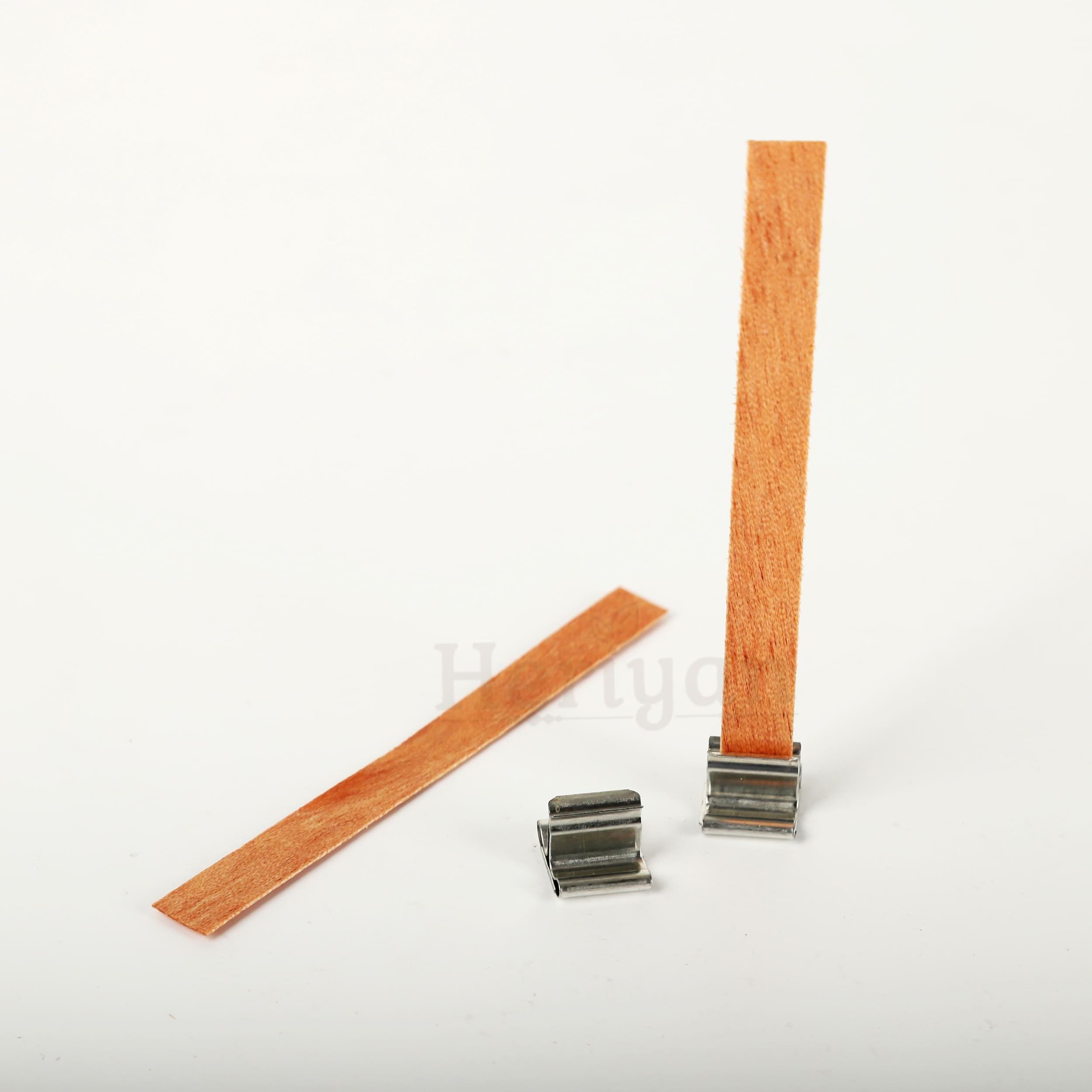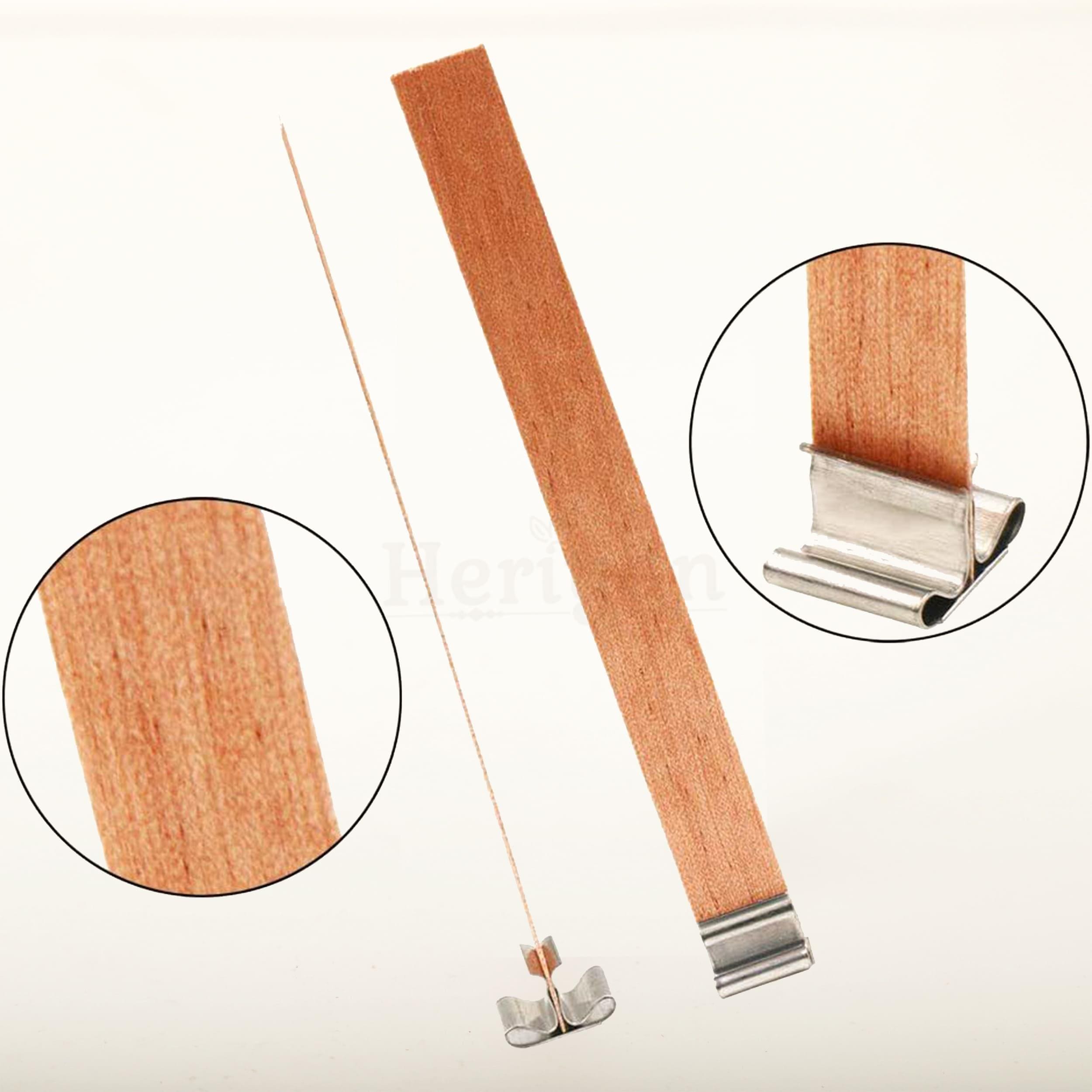 🕯️Natural Wooden wicks with metal base, 8x90x1mm (0.31x3.54x0.04 Inch) for each wick.