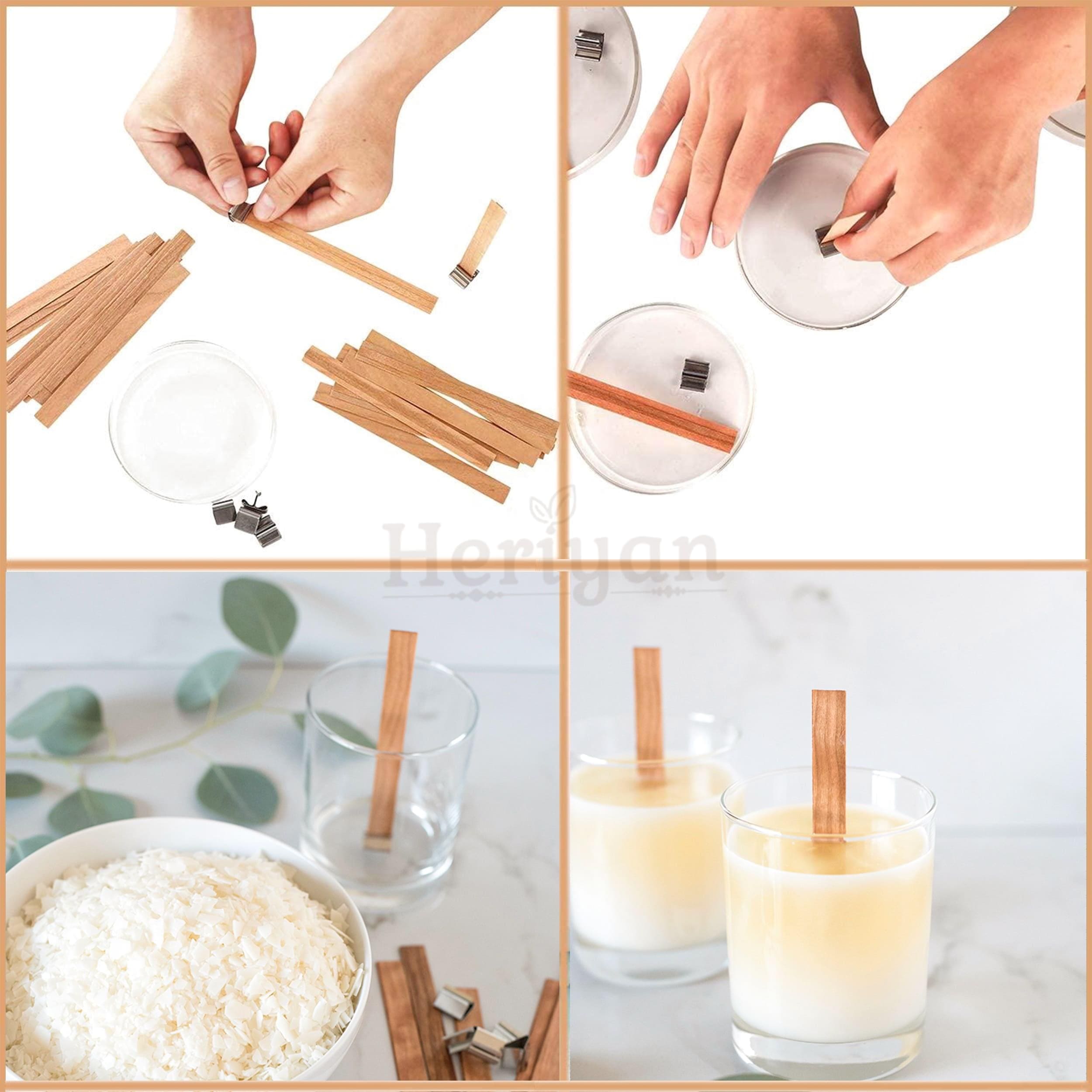 🕯️Easy to Use: Fix the candle wicks to the wood wick clips and put them on the bottom of a container, then hold the top of them as you pour in candle wax.