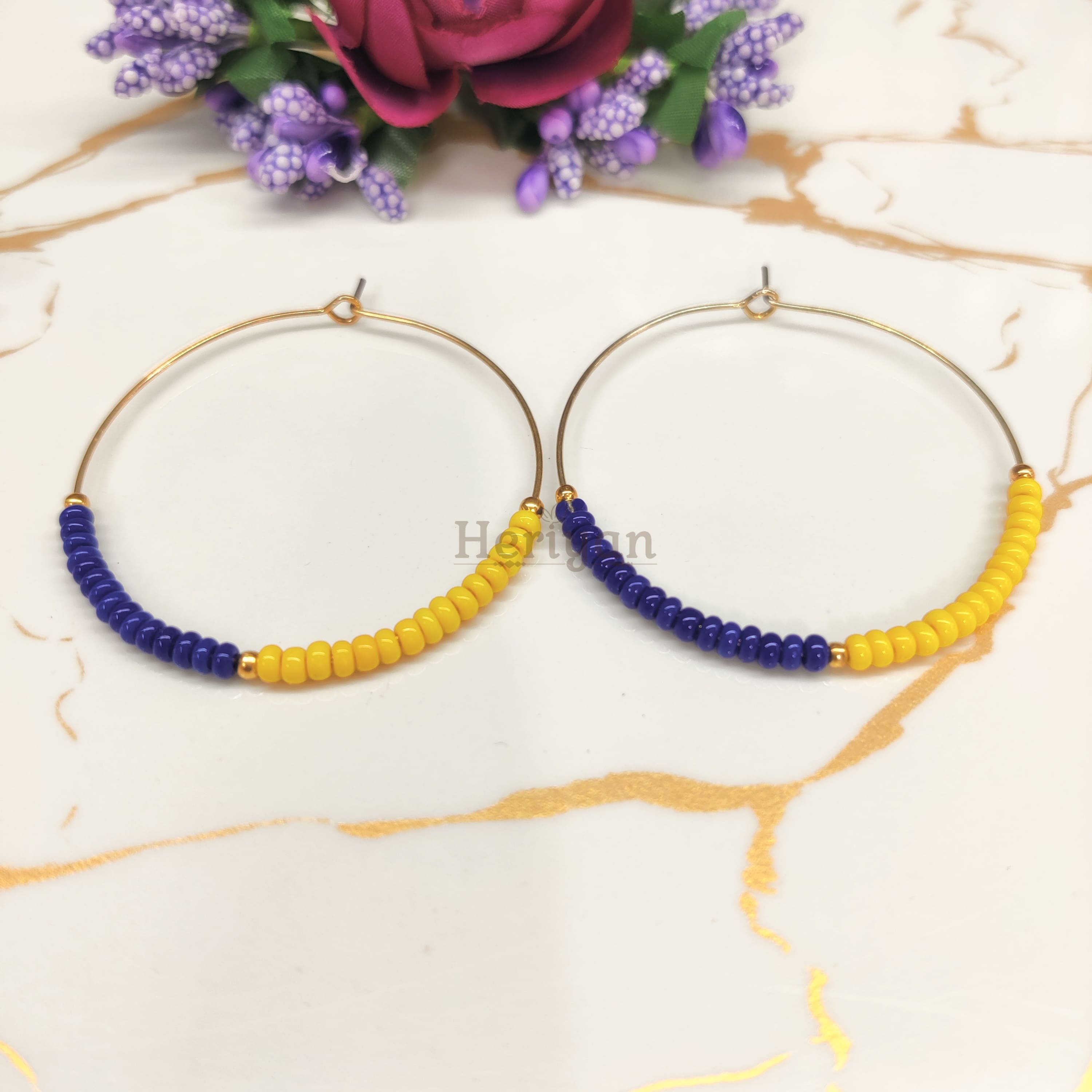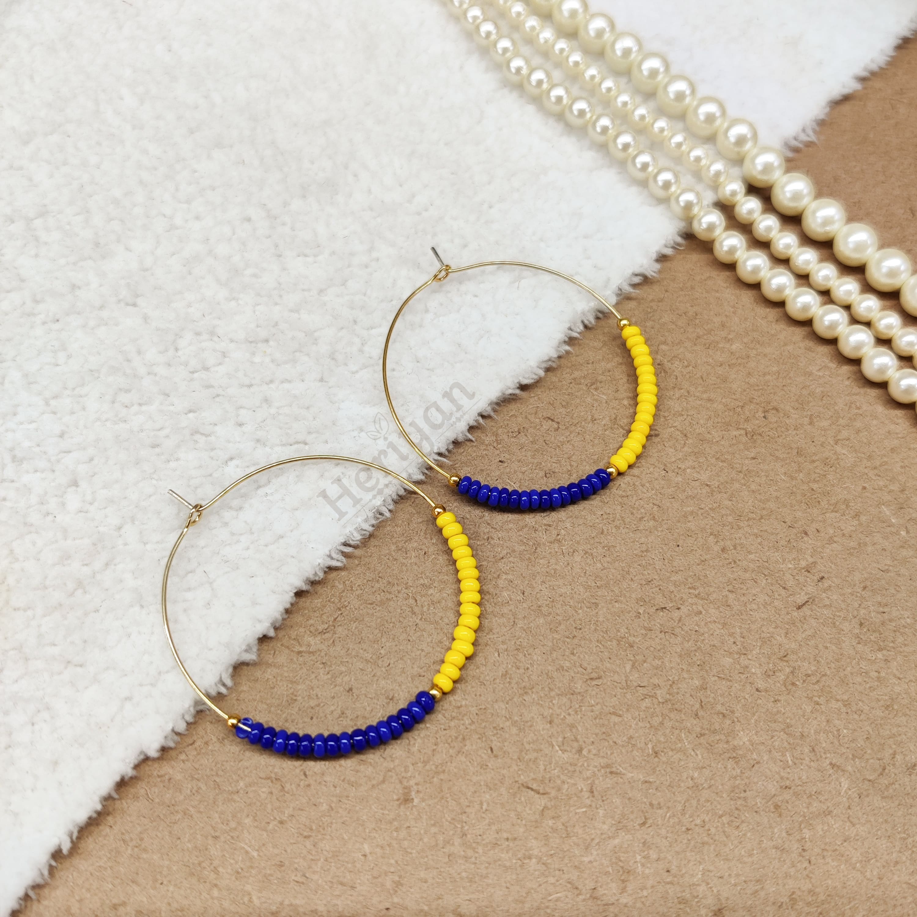 Yellow & Blue Beaded Hoop Earrings (Contrasting) Earrings