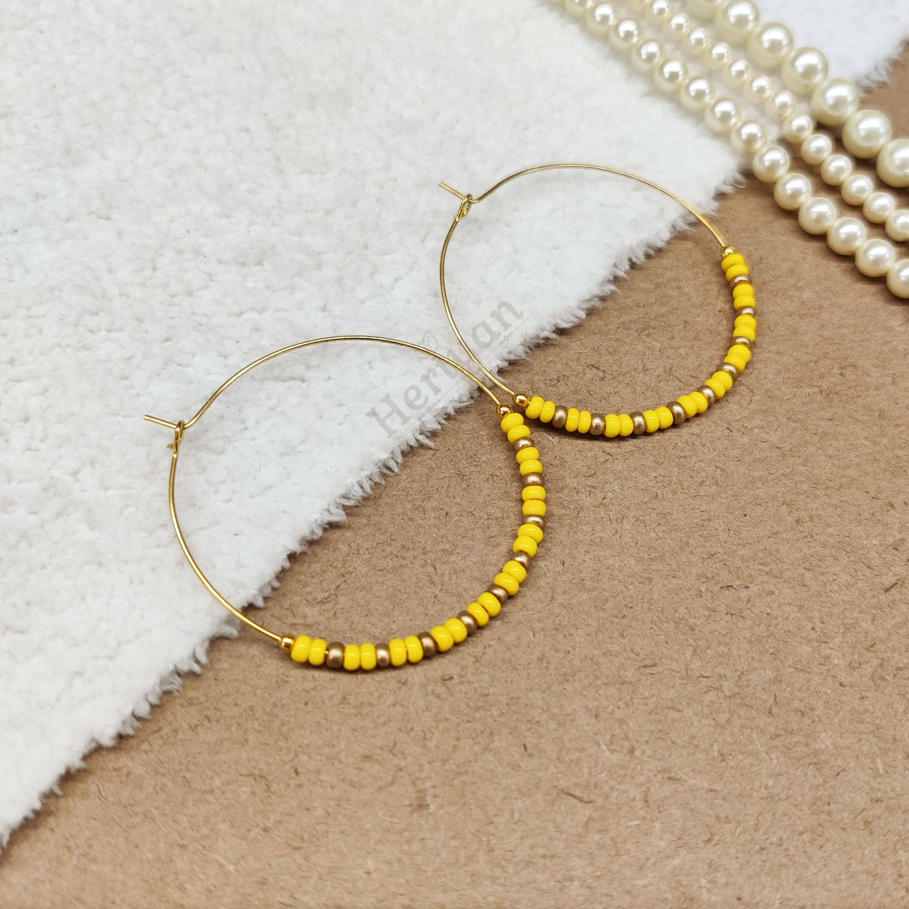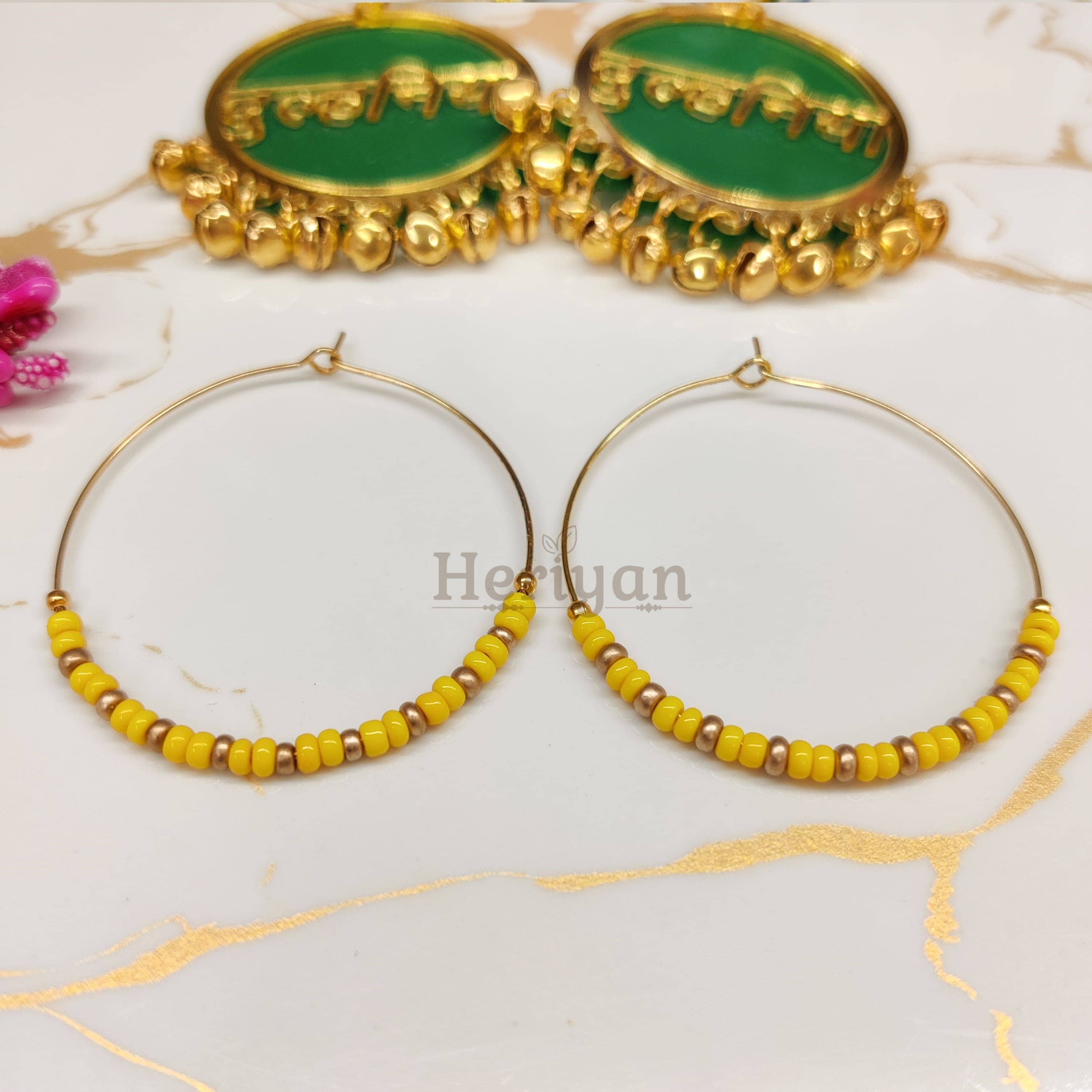 Yellow Beaded Hoop Earrings (2 Colored) Earrings