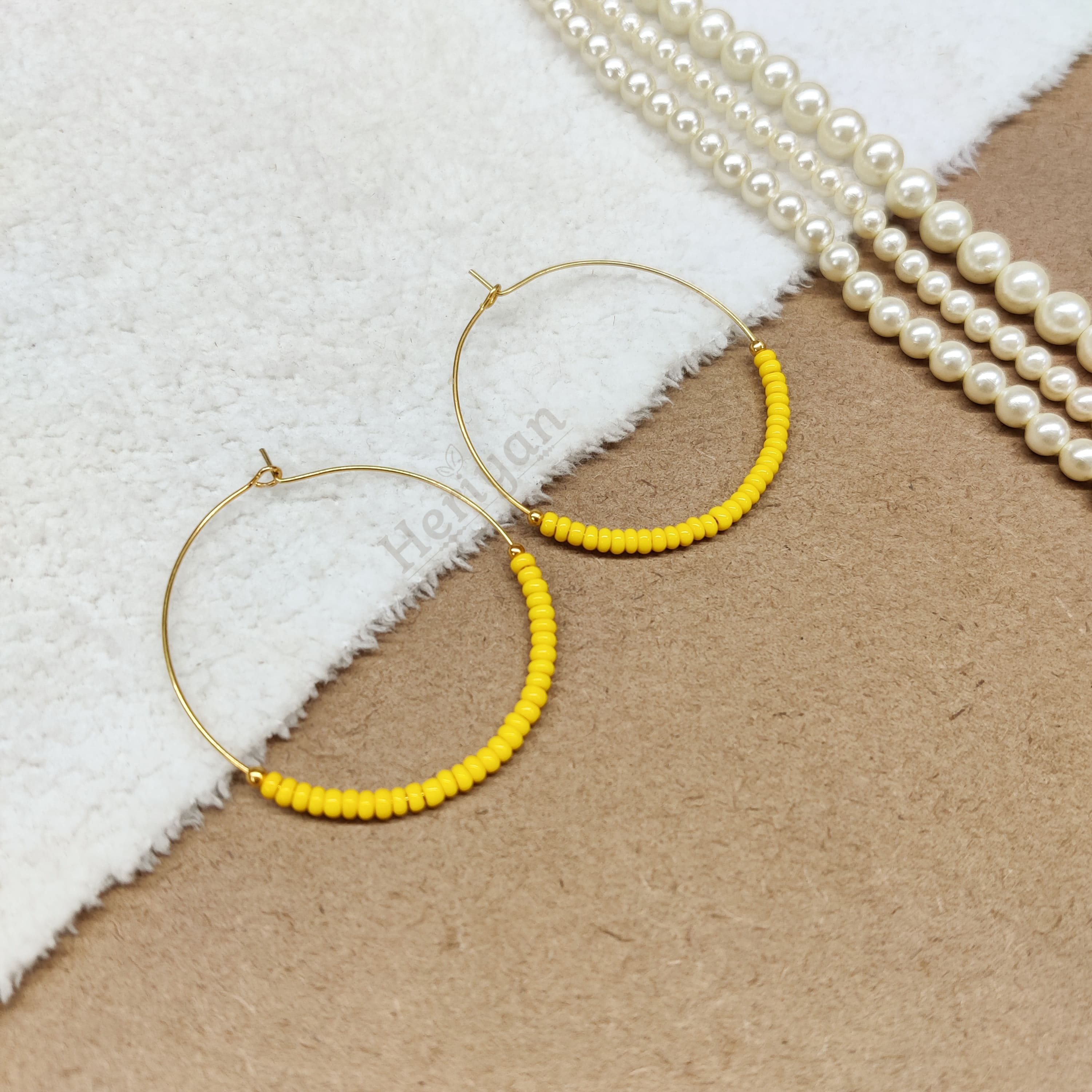 Yellow Beaded Hoop Earrings (Half) Earrings